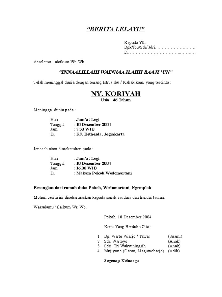 Contoh Pawartos Lelayu Berita Acara Kematian Bahasa Jawa