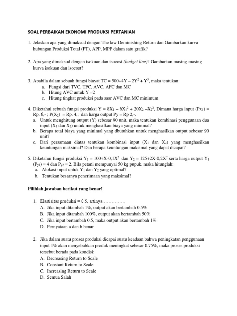 Laboratorium Ekonomi Pertanian FP-Universitas Brawijaya Email. Soal Dan Jawaban Ekonomi Pertanian 48 soal bola voli lengkap jawaban. Contoh soal ekonomi produksi pertanian.